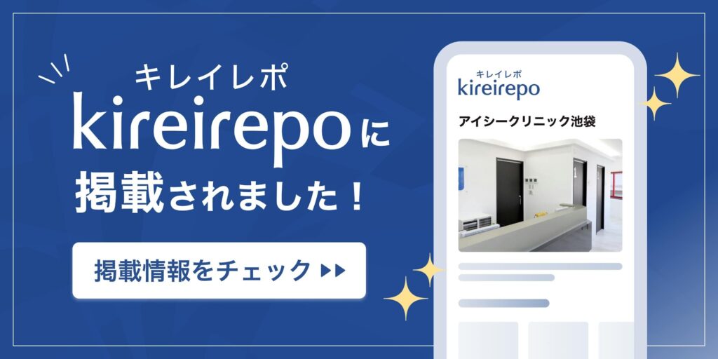 この度、アイシークリニック池袋院が美容医療(自由診療・審美歯科)のプラットフォーム キレイレポに掲載されました。